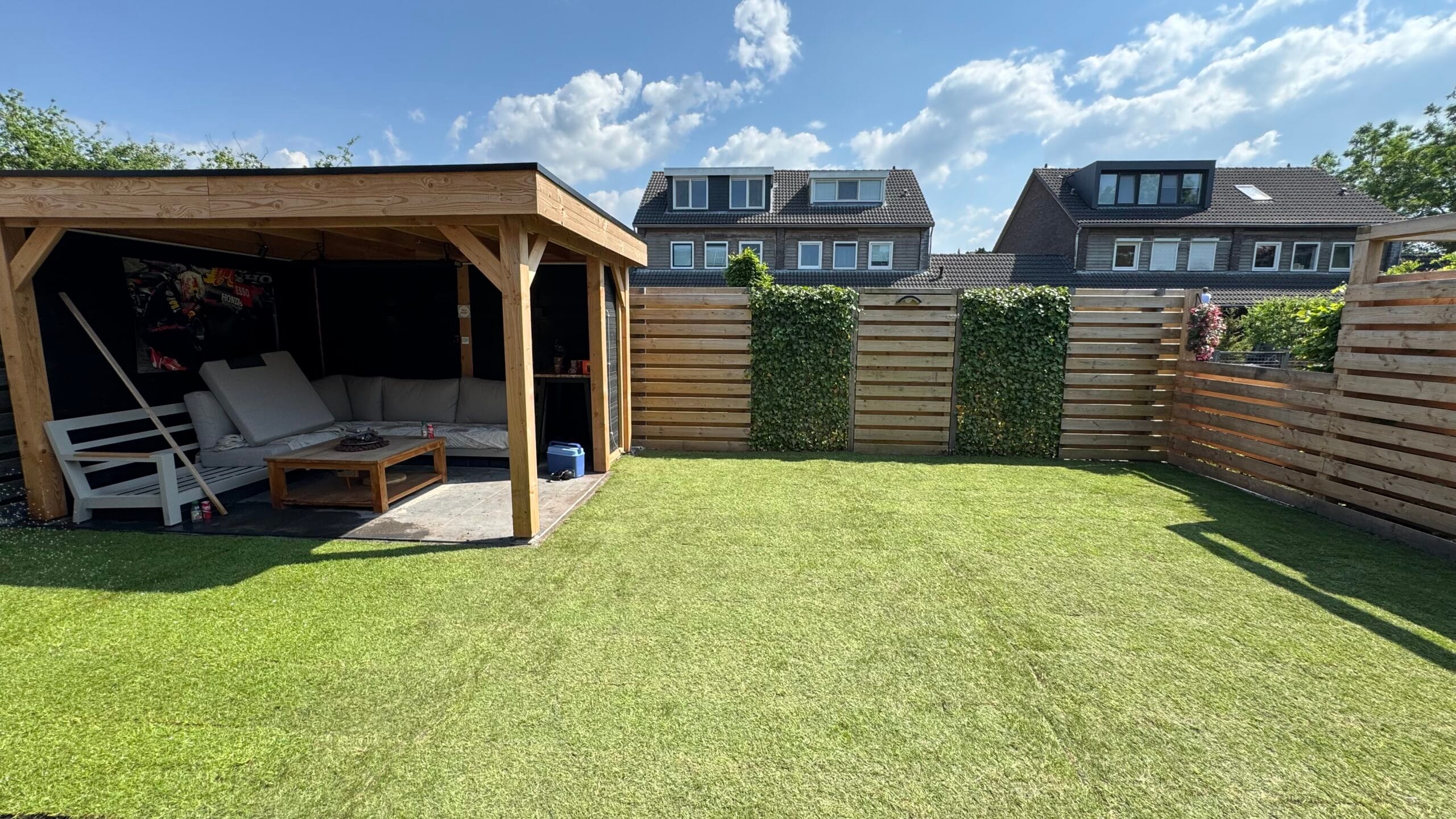 In Hoogkerk, nabij Groningen, hebben wij een nieuwe grasmat aangelegd als onderdeel van een complete gazon aanleg. De bestaande ondergrond is zorgvuldig voorbereid en geëgaliseerd, zodat de graszoden optimaal konden wortelen. Voor dit project zijn hoogwaardige graszoden gebruikt, wat zorgt voor een sterke en gelijkmatige grasmat met een frisse uitstraling.